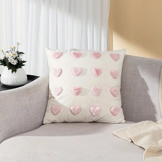 Romantic Heart Throw Pillow Cover – Modern Pink Ins Style Cushion for Sofa or Bed